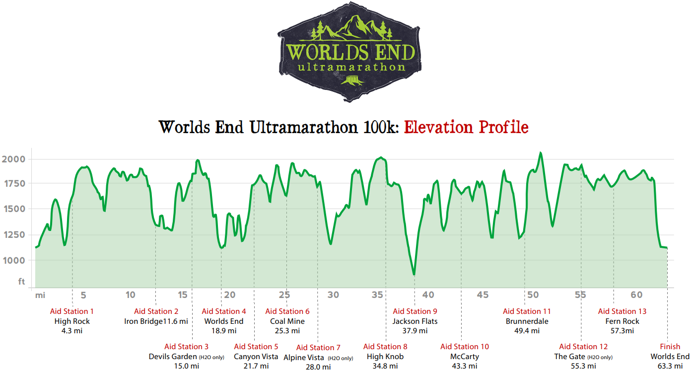 Worlds End 100k is regarded as one of the most difficult running races on the east coast. It does not boast any individually massive or daunting climbs, but what it does have is a relentless onslaught of mud, uphills, and downhills, accumulating over 12,000 vertical feet of elevation gain over the course of the race. It offers very few flat sections where you can gain time, and oftentimes those flat sections are accompanied by rushing stream and waterfall crossings or deep, shoe sucking mud. The key to completing Worlds End is simple, keep your feet moving. However, don’t think you can have a nice stroll in the woods, as you only have 19 hours to complete this brutal but beautiful course.